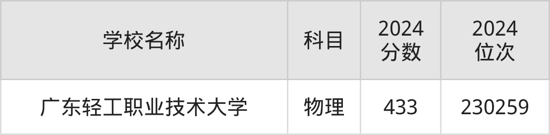 其中,物理组433分位于广东的学校有广东轻工职业技术大学。