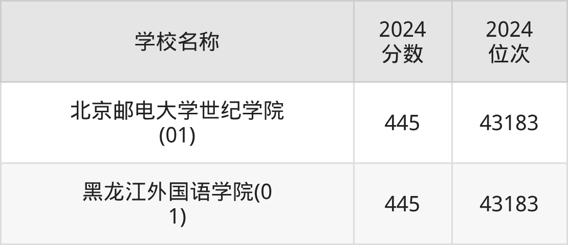 | 哈尔滨华德学院(01) | 445 | 42878 |