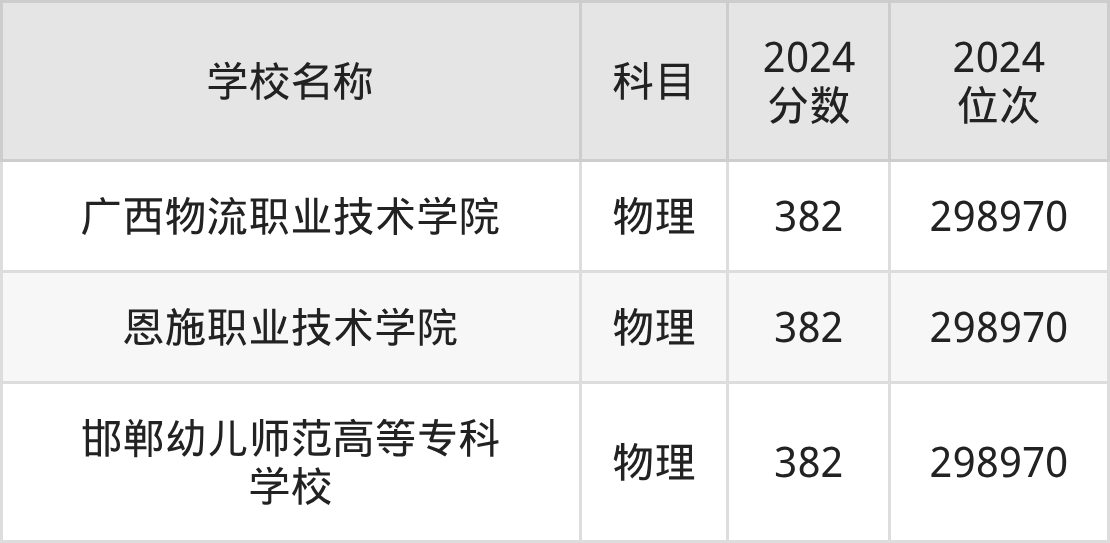 | 江西工业贸易职业技术 学院 | 物理 | 382 | 306526 |