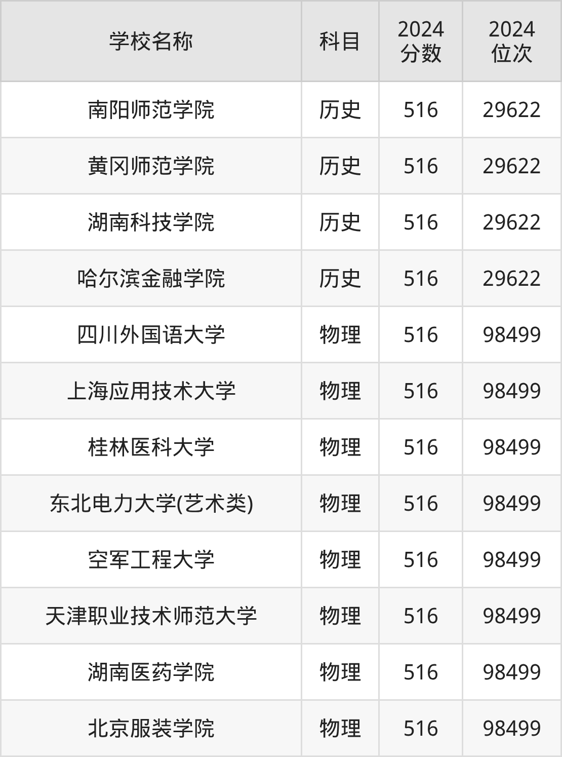 | 首都体育学院 | 物理 | 516 | 81468 |