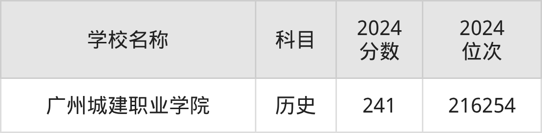其中,历史组241分位于广东的学校有广州城建职业学院。