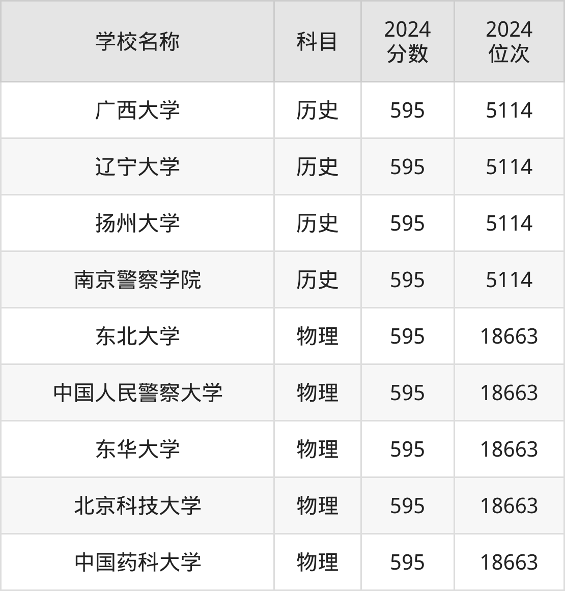 | 学校名称 | 科目 | 2025 分数 | 2025 位次 |