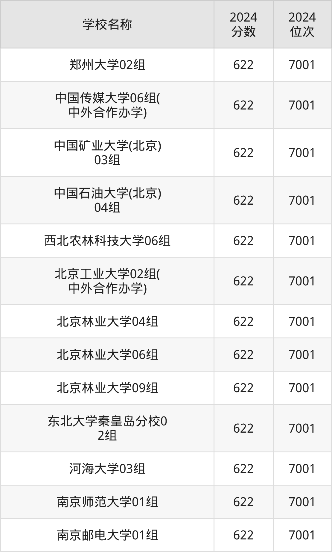 其中,622分位于北京的学校有中国传媒大学、中国矿业大学(北京)、中国石油大学(北京)。