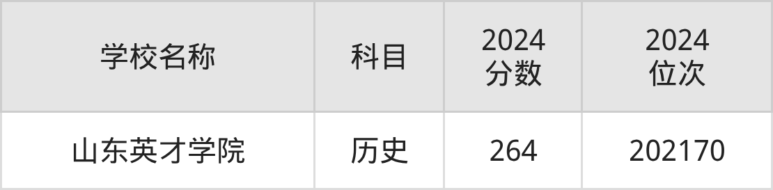 其中,历史组264分位于山东的学校有山东英才学院。
