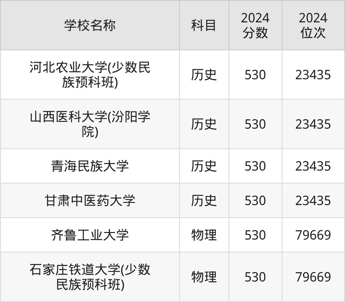 | 河北大学(少数民族预 科班) | 物理 | 530 | 66510 |