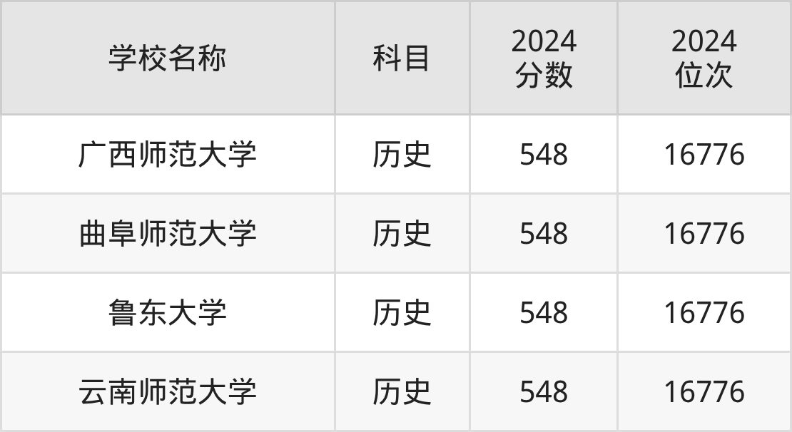 | 杭州师范大学 | 历史 | 548 | 11740 |
