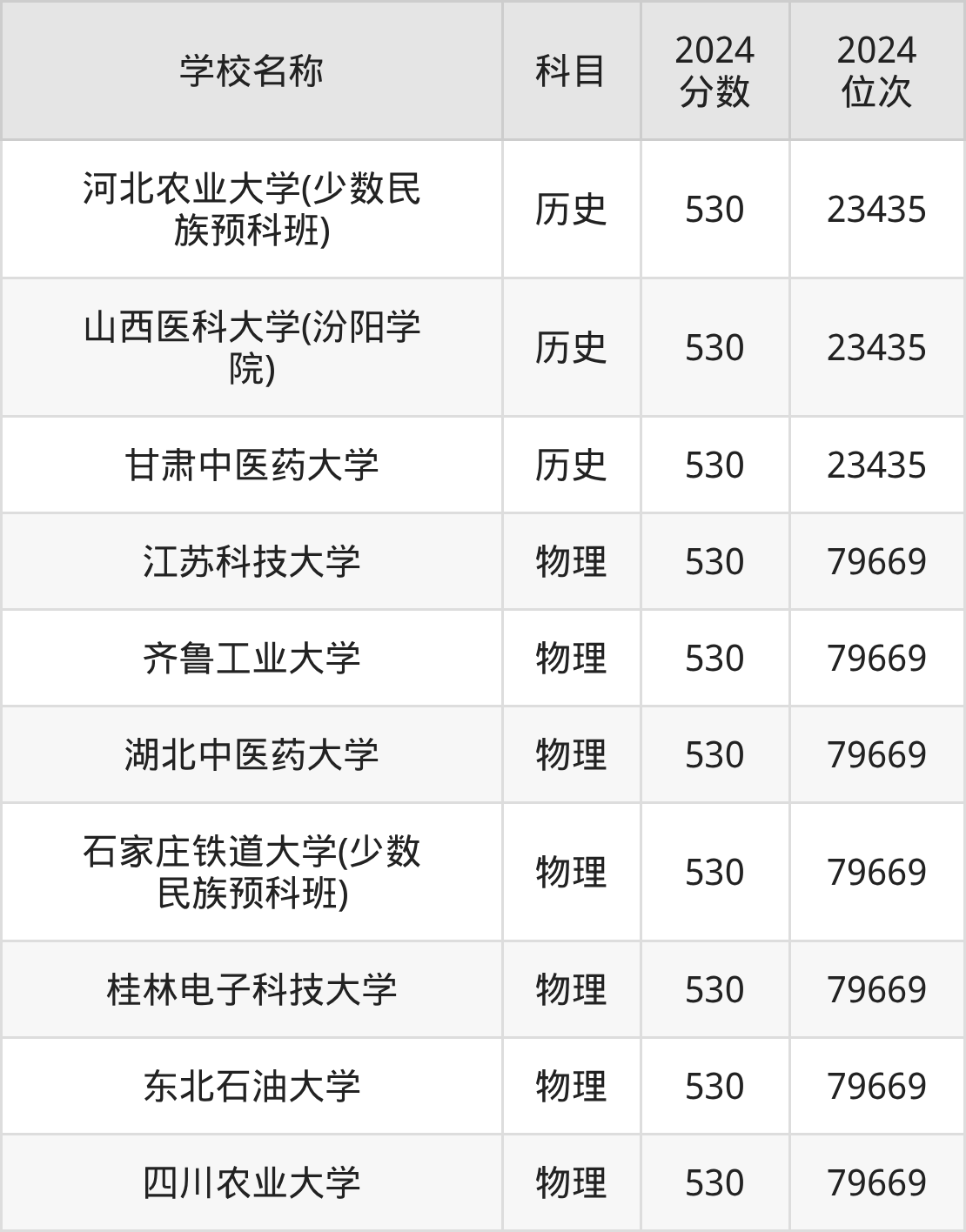 | 石家庄铁道大学(地方 专项计划) | 历史 | 530 | 16886 |