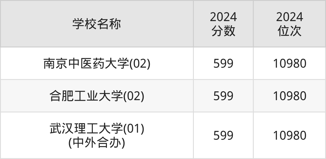 通过上文大家可以知晓:北京高考599分左右,在北京市内可选:中国矿业大学(北京)、北京工业大学、北京中医药大学,在北京市外可选:南方医科大学、温州医科大学、广州中医药大学、哈尔滨医科大学、大连海事大学。