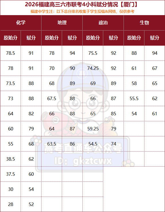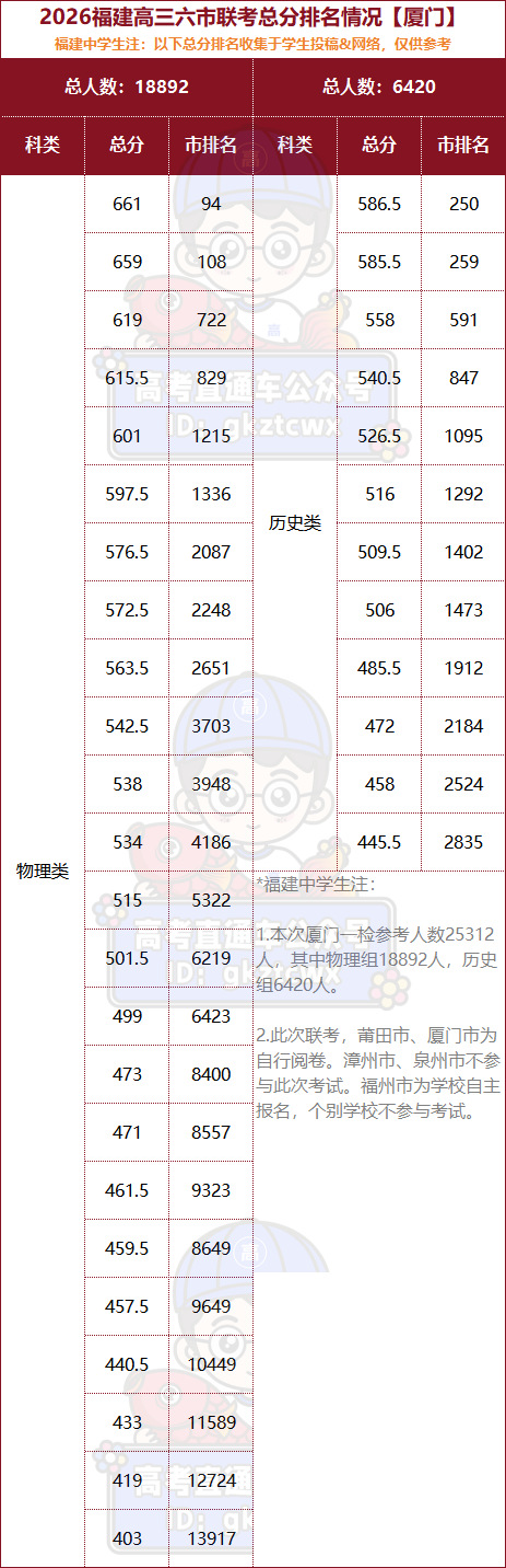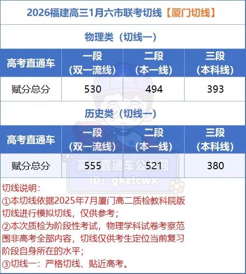 对于厦门考生而言,除了关注全省划线,更需要仔细研究本次作为六市联考一部分的“厦门一检”所独有的数据。需要再三强调的是,本次厦门切线为基于往年数据的模拟切线,主要作用是帮助考生定位当前复习阶段的水平,仅供参考,并非最终高考预测。