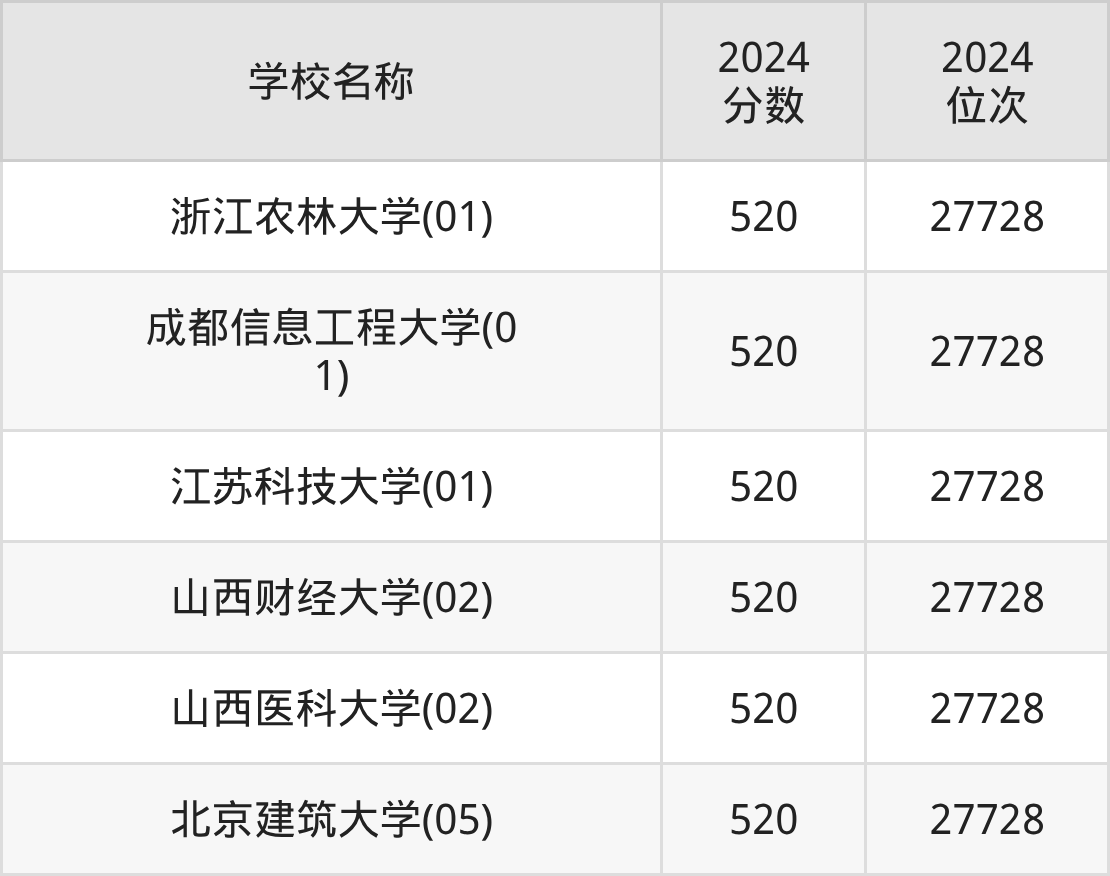 | 重庆交通大学(01) | 520 | 32178 |