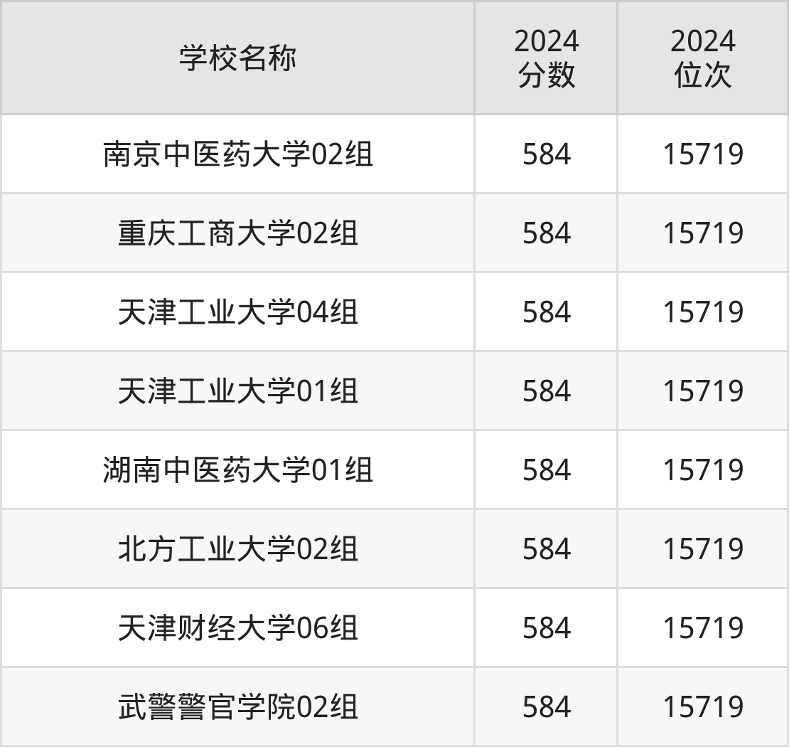 其中,584分位于天津的学校有天津工业大学、天津财经大学。