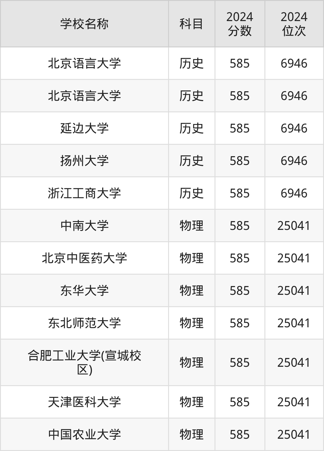 | 中国地质大学(北京) | 物理 | 585 | 23353 |