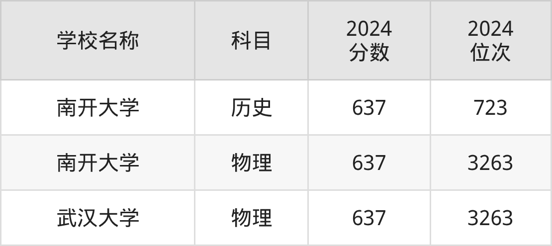 其中,物理组637分位于天津的学校有南开大学。历史组637分位于天津的学校有南开大学。