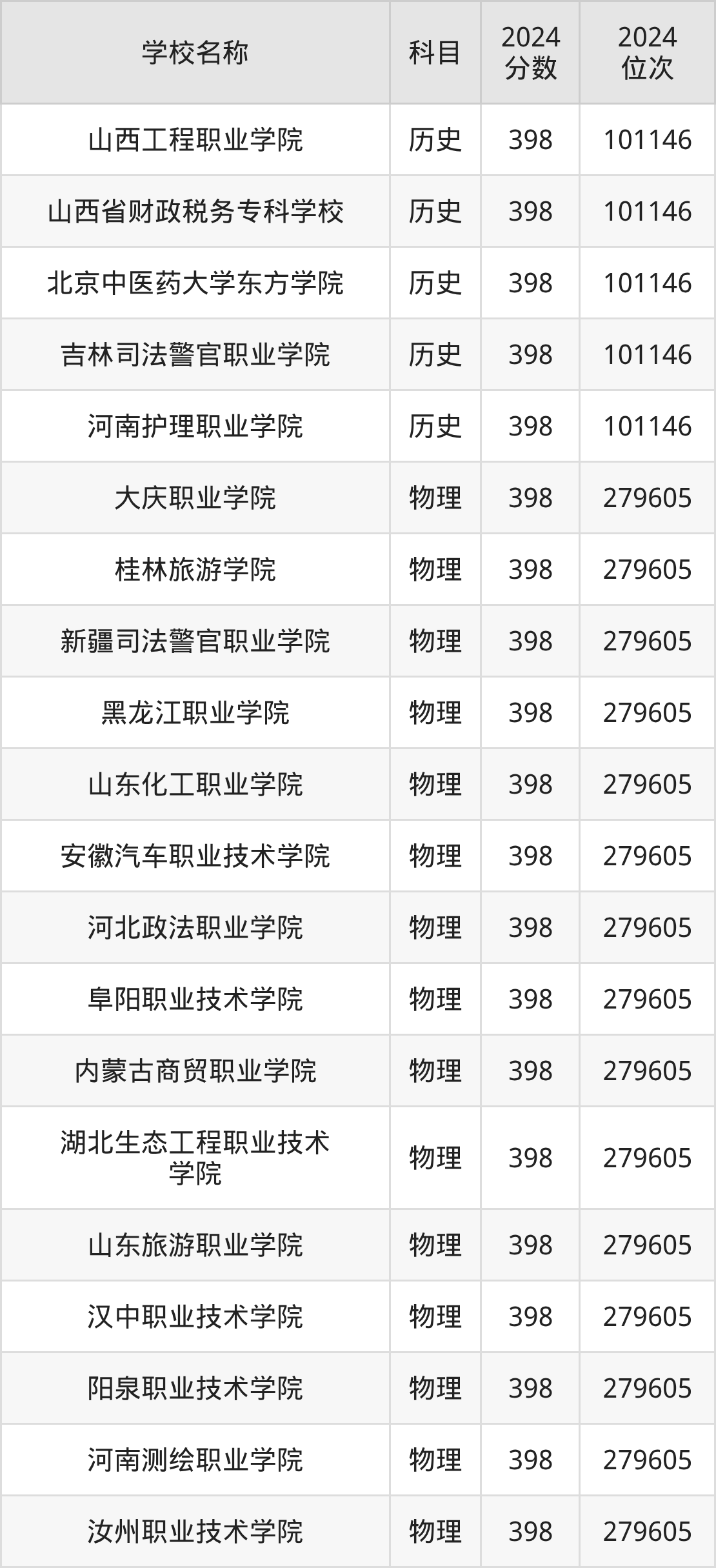 | 长治职业技术学院 | 历史 | 398 | 122735 |