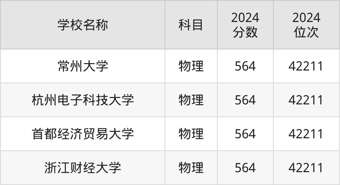 回看2024年河北高考最低分为564分的理科大学名单,物理组有4条数据。