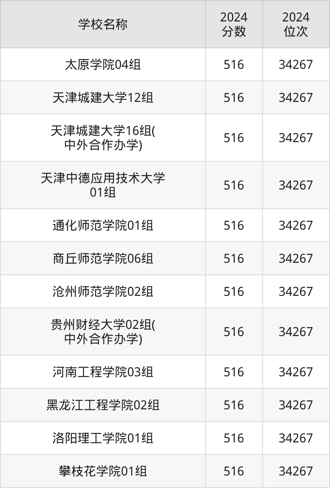 其中,516分位于天津的学校有天津城建大学、天津中德应用技术大学。