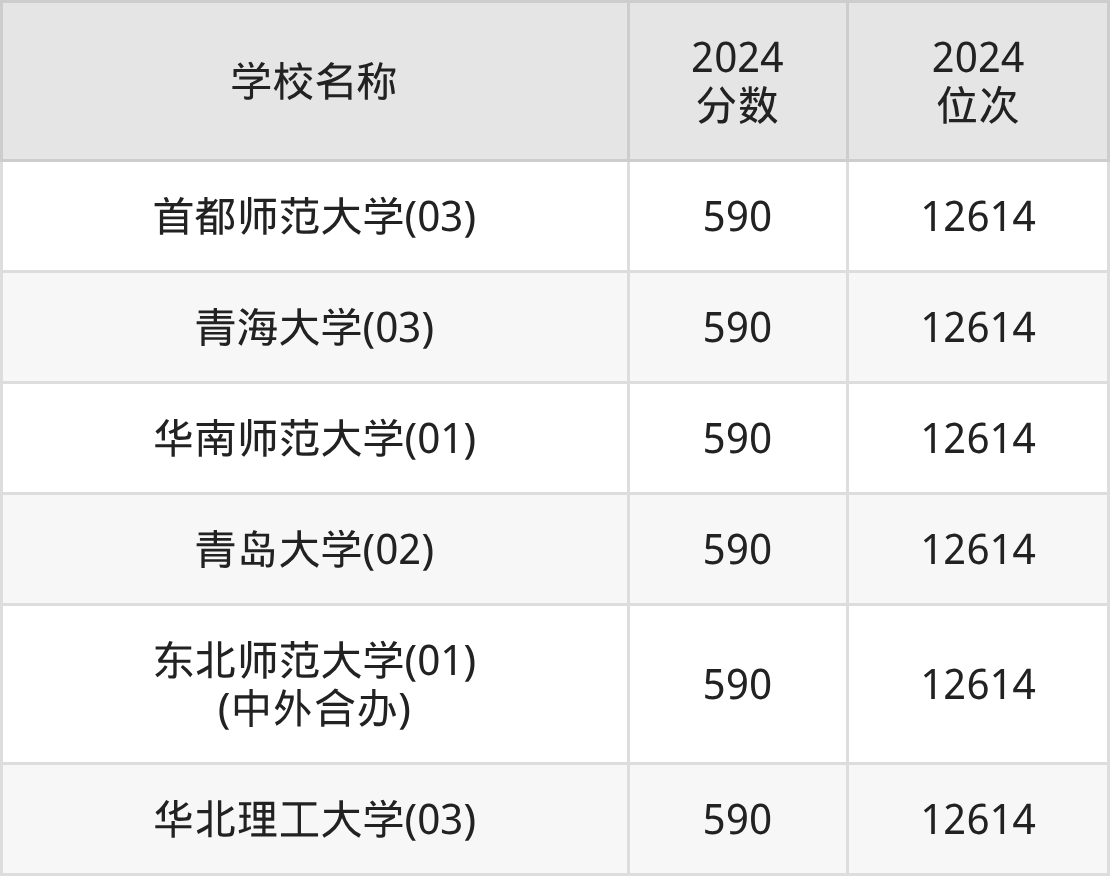 通过下方的表格:2026届高考生可以直观看到2025年北京高考最低分为590分的所有文科大学。