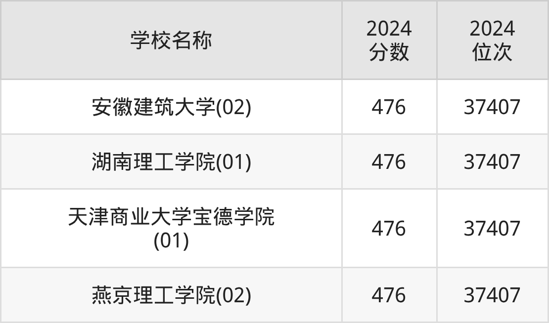 回看2024年北京高考最低分为476分的理科大学名单,有4条数据。