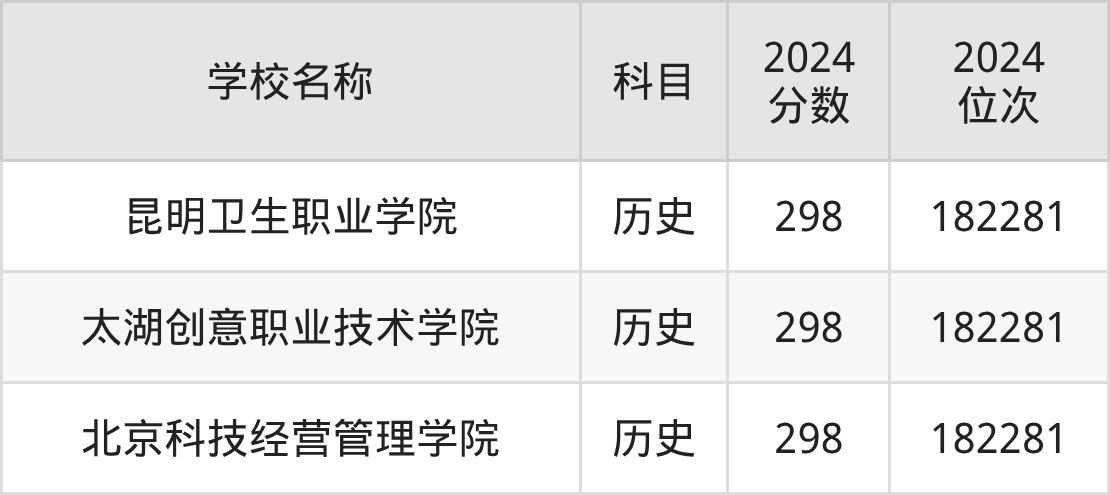 回看2024年河北高考最低分为298分的理科大学名单,历史组有3条数据。