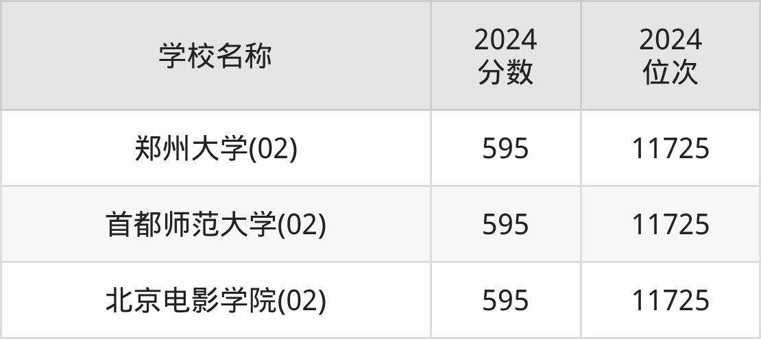 其中,595分位于北京的学校有首都师范大学、北京电影学院。