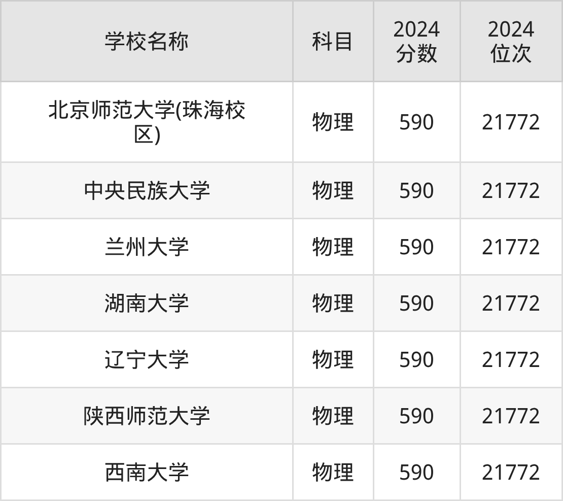 | 陕西师范大学 | 物理 | 590 | 20607 |