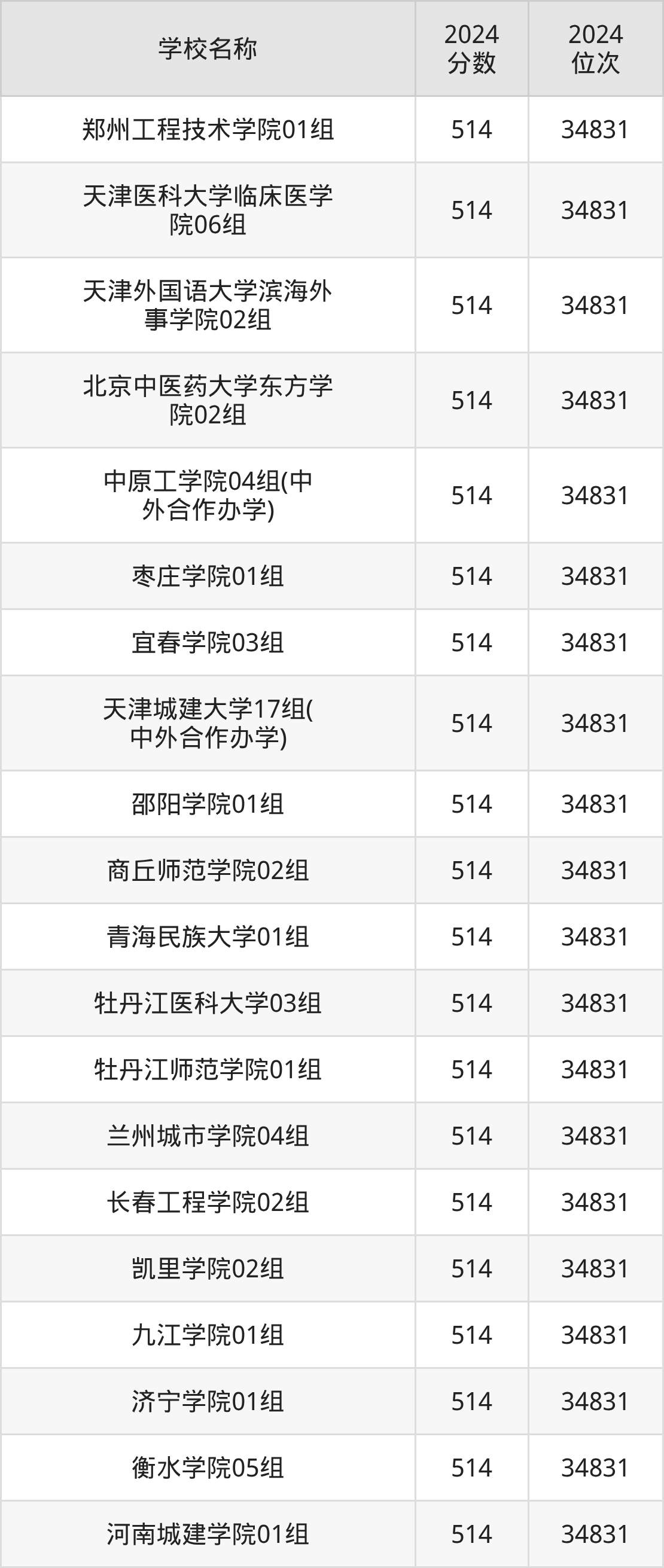 其中,514分位于天津的学校有天津医科大学临床医学院、天津外国语大学滨海外事学院、天津城建大学。