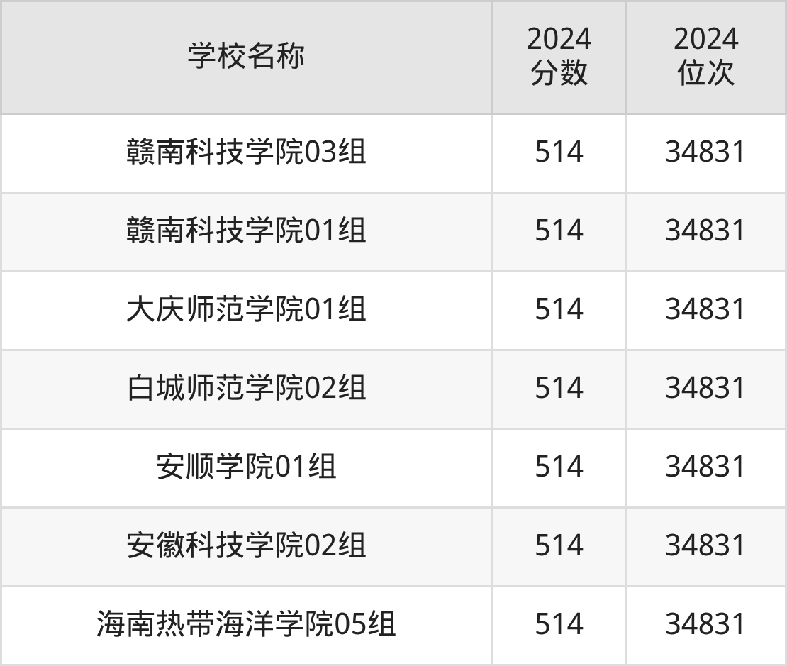 | 赣南科技学院01组 | 514 | 36107 |