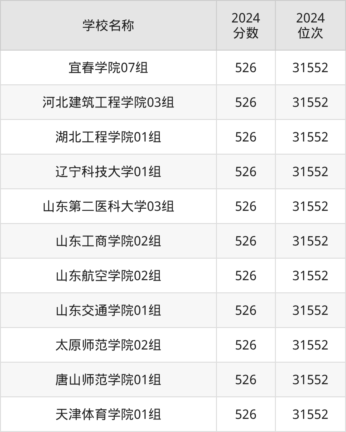 其中,526分位于天津的学校有天津体育学院。