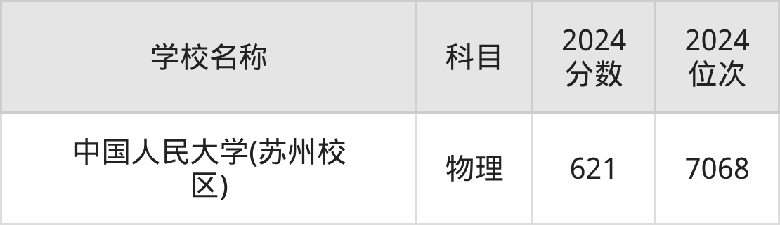 其中,物理组621分位于江苏的学校有中国人民大学(苏州校区)。