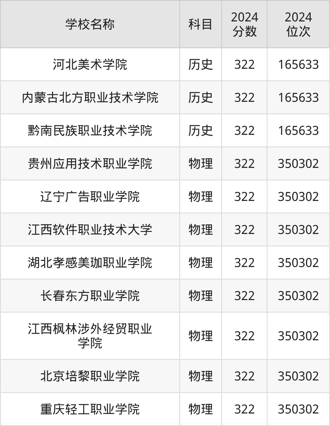 其中,物理组322分位于北京的学校有北京培黎职业学院。历史组322分位于北京的学校有河北美术学院。