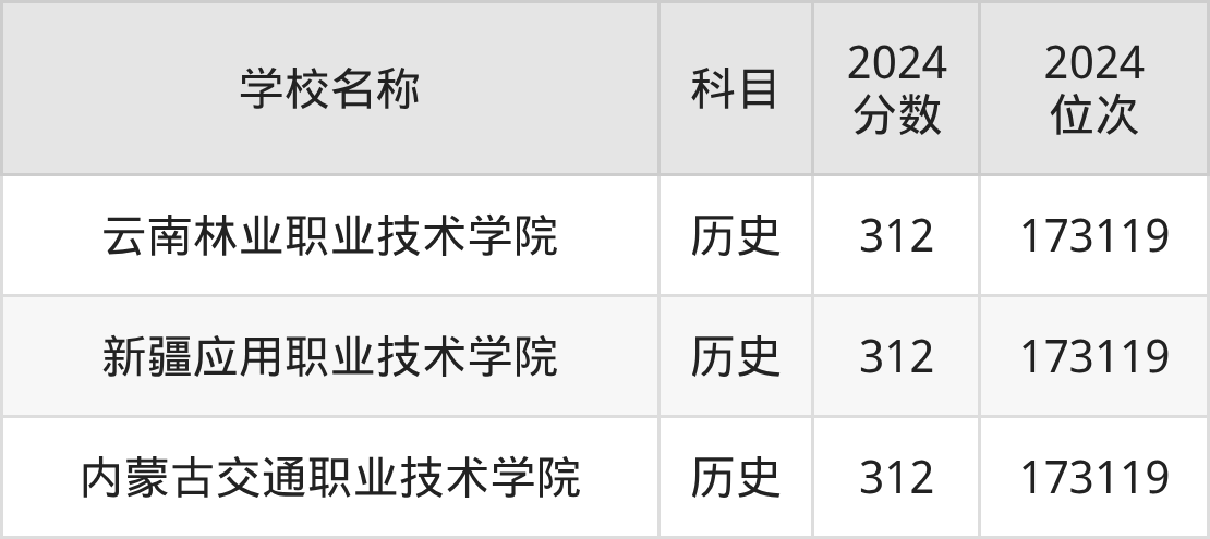 其中,历史组312分位于云南的学校有云南林业职业技术学院。