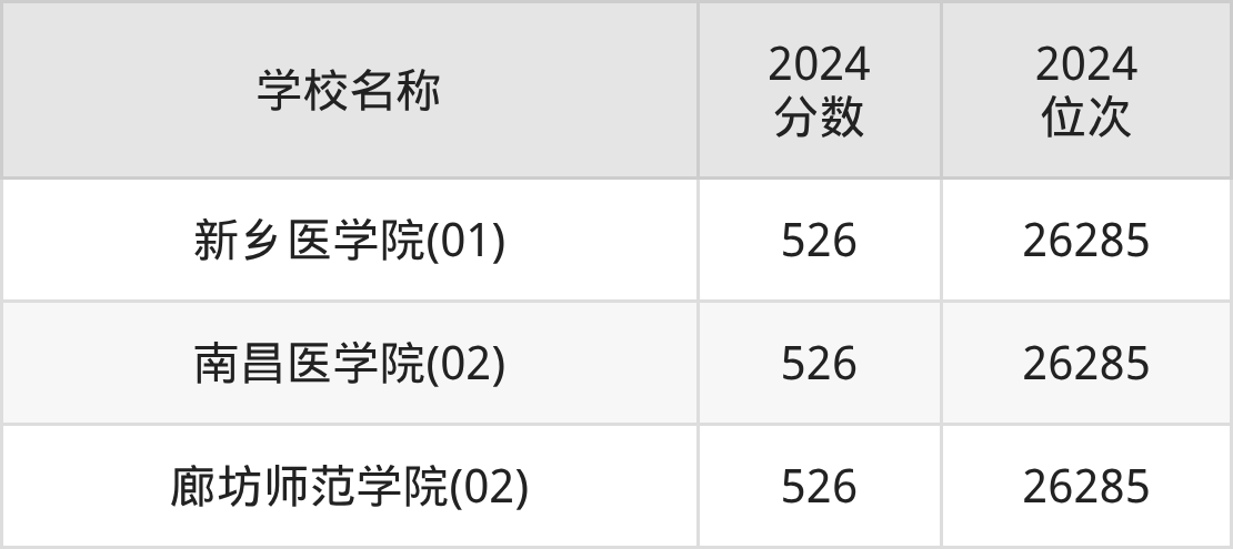 | 齐鲁医药学院(02) | 526 | 25776 |