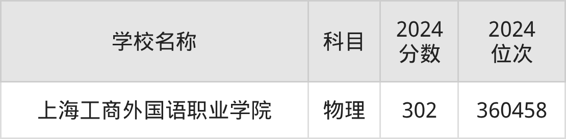 其中,物理组302分位于上海的学校有上海工商外国语职业学院。