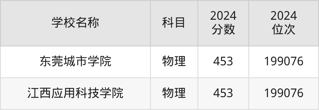 | 重庆城市科技学院 | 物理 | 453 | 163713 |