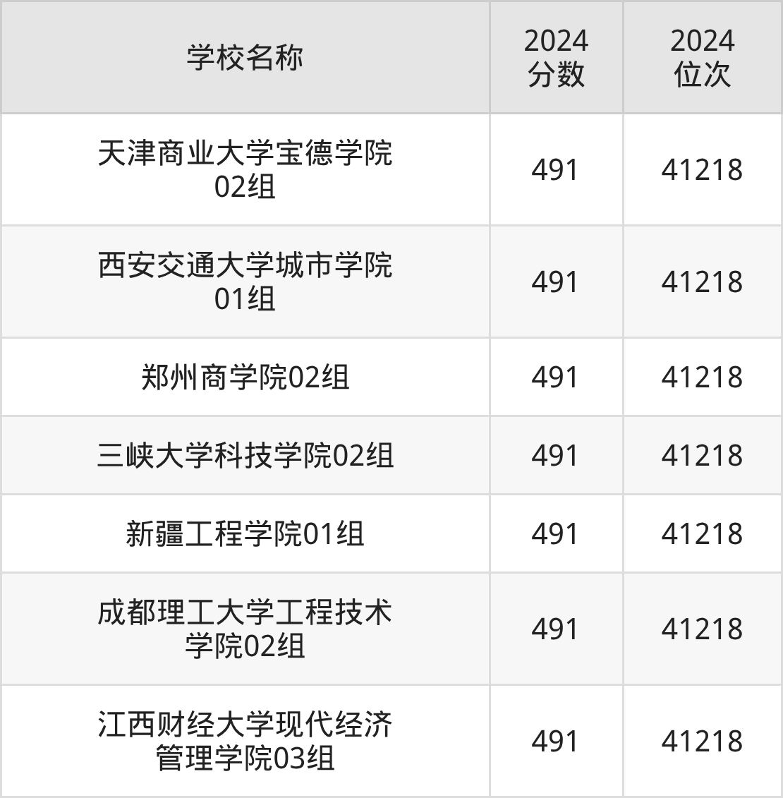其中,491分位于天津的学校有天津商业大学宝德学院。