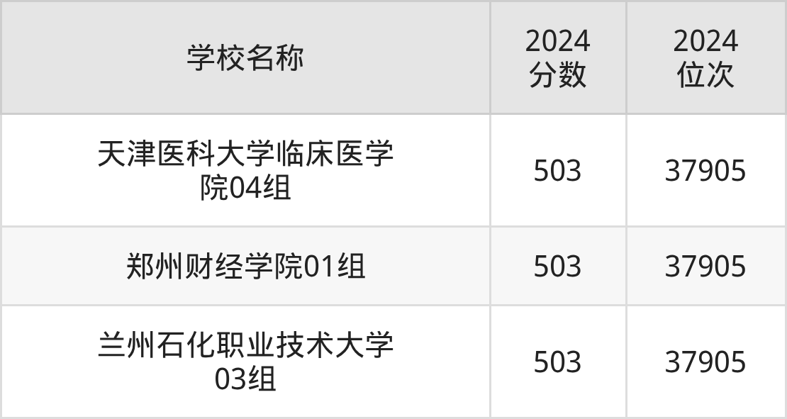 回看2024年天津高考最低分为503分的理科大学名单,有3条数据。