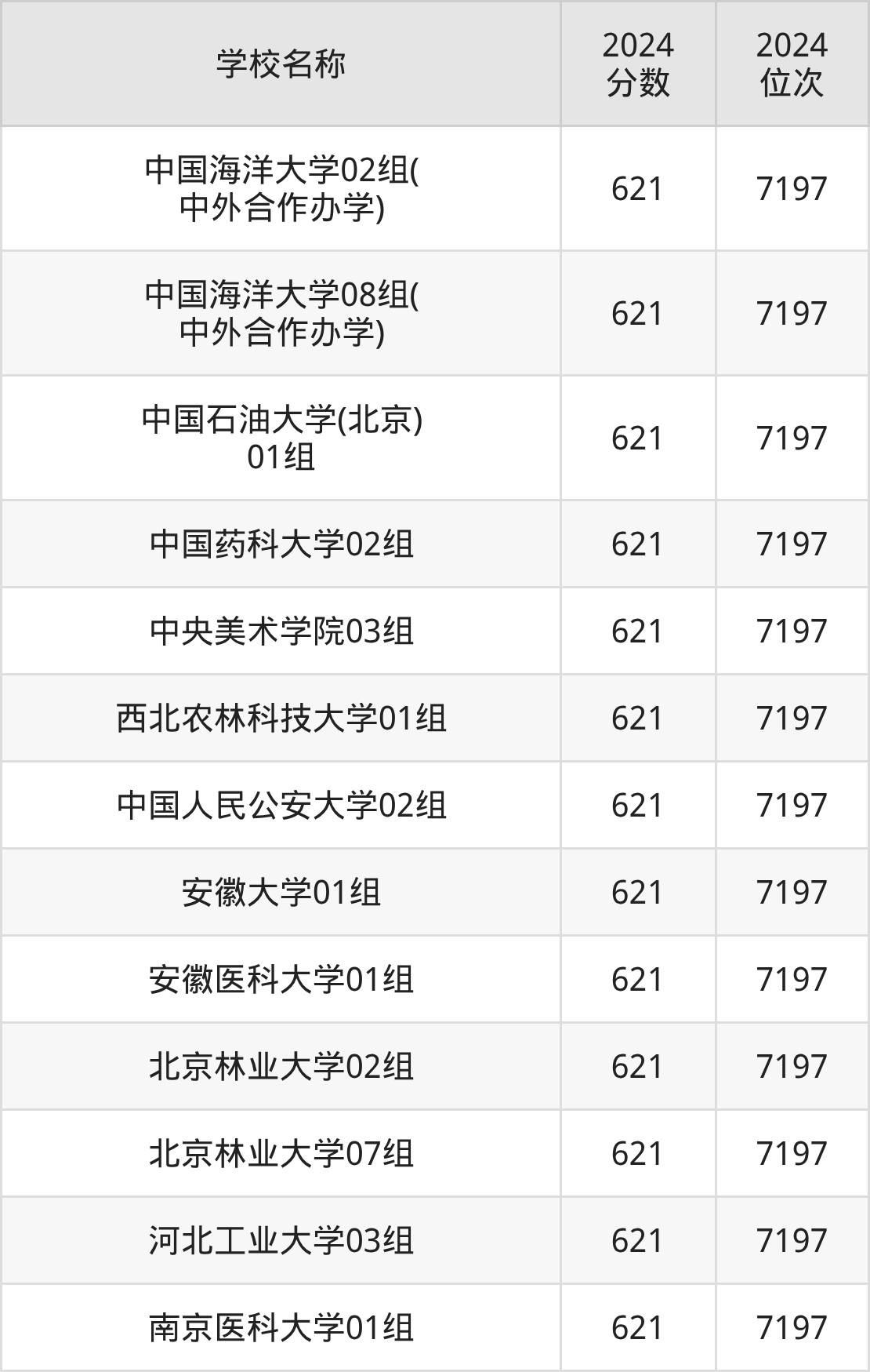 | 北京交通大学(威海校 区)01组(中外合作) | 621 | 8339 |