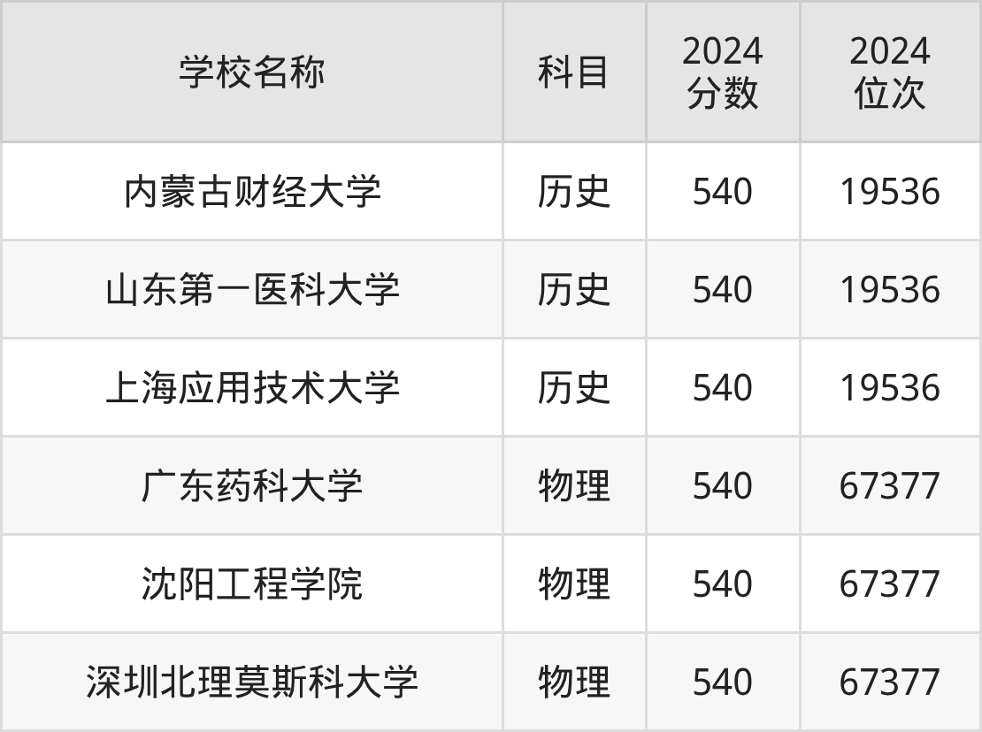 其中,物理组540分位于广东的学校有广东药科大学、深圳北理莫斯科大学。历史组540分位于广东的学校有上海应用技术大学。