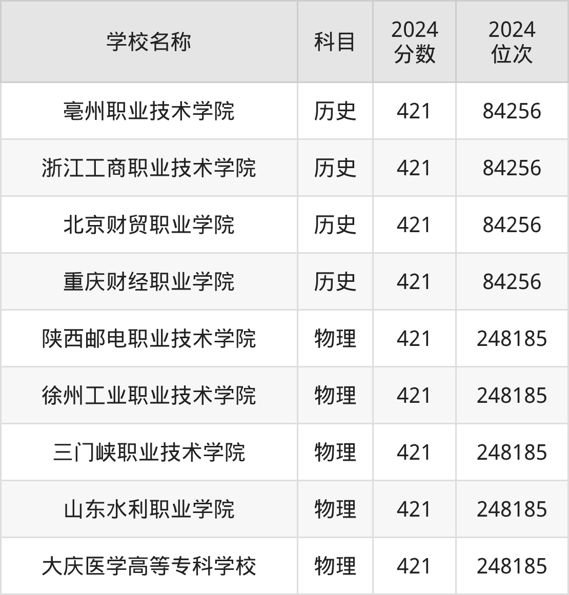 | 重庆商务职业学院 | 物理 | 421 | 271169 |