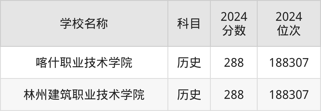 其中,历史组288分位于新疆的学校有喀什职业技术学院。