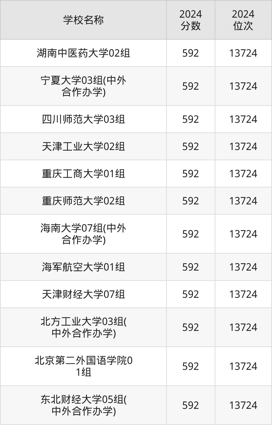 其中,592分位于天津的学校有天津工业大学、天津财经大学。