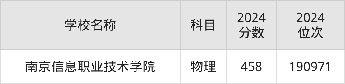 | 江苏城市职业学院 | 物理 | 460 | 222850 |