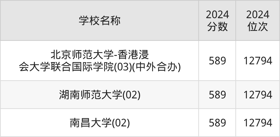 | 湖南师范大学(02) | 589 | 12440 |