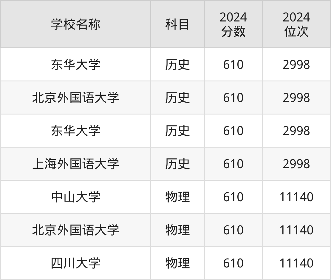 其中,物理组610分位于北京的学校有北京外国语大学。历史组610分位于北京的学校有北京外国语大学。