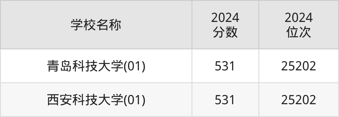| 青岛科技大学(01) | 531 | 24629 |