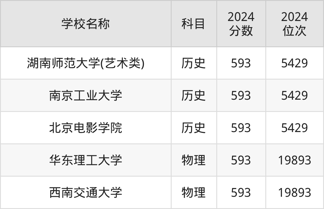 其中,物理组593分位于上海的学校有华东理工大学。历史组593分位于上海的学校有北京电影学院。