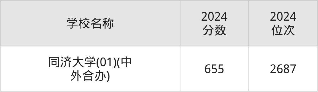 其中,655分位于上海的学校有同济大学。