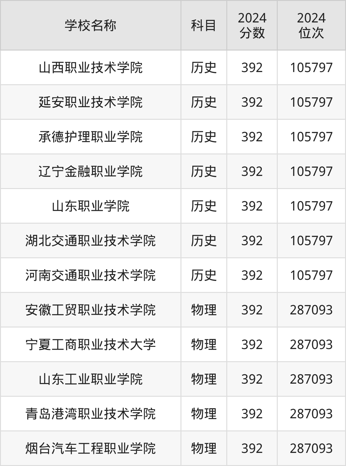 | 衡水职业技术学院 | 历史 | 392 | 127497 |