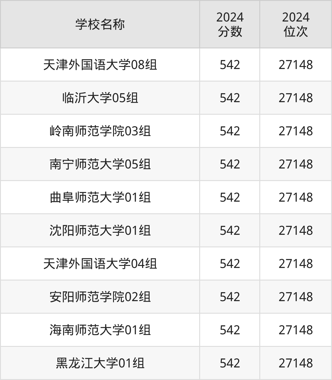 回看2024年天津高考最低分为542分的文科大学名单,有10条数据。