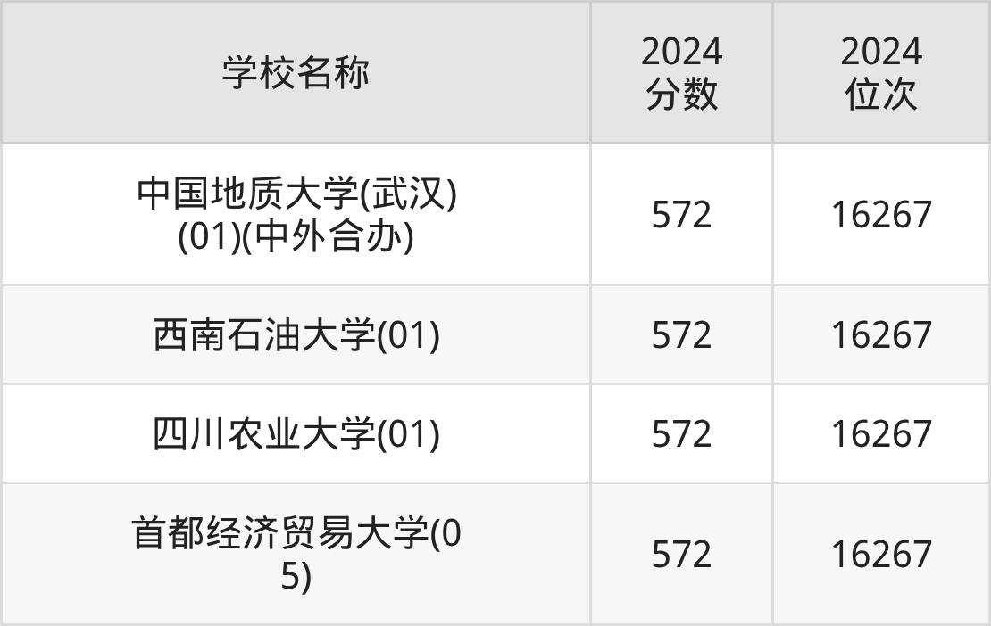 回看2024年北京高考最低分为572分的理科大学名单,有4条数据。